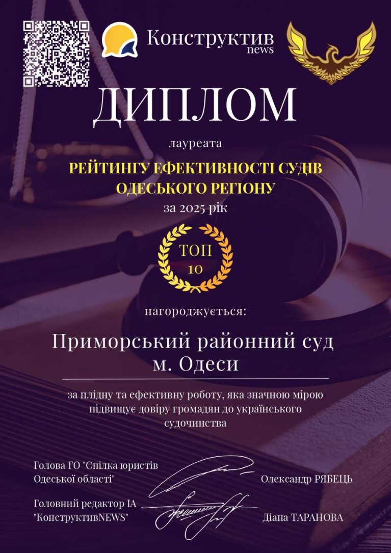 Приморський районний суд міста Одеси у топ-10, попри величезний обсяг роботи, продемонстрував високий рівень організації та належне управління судовими процесами